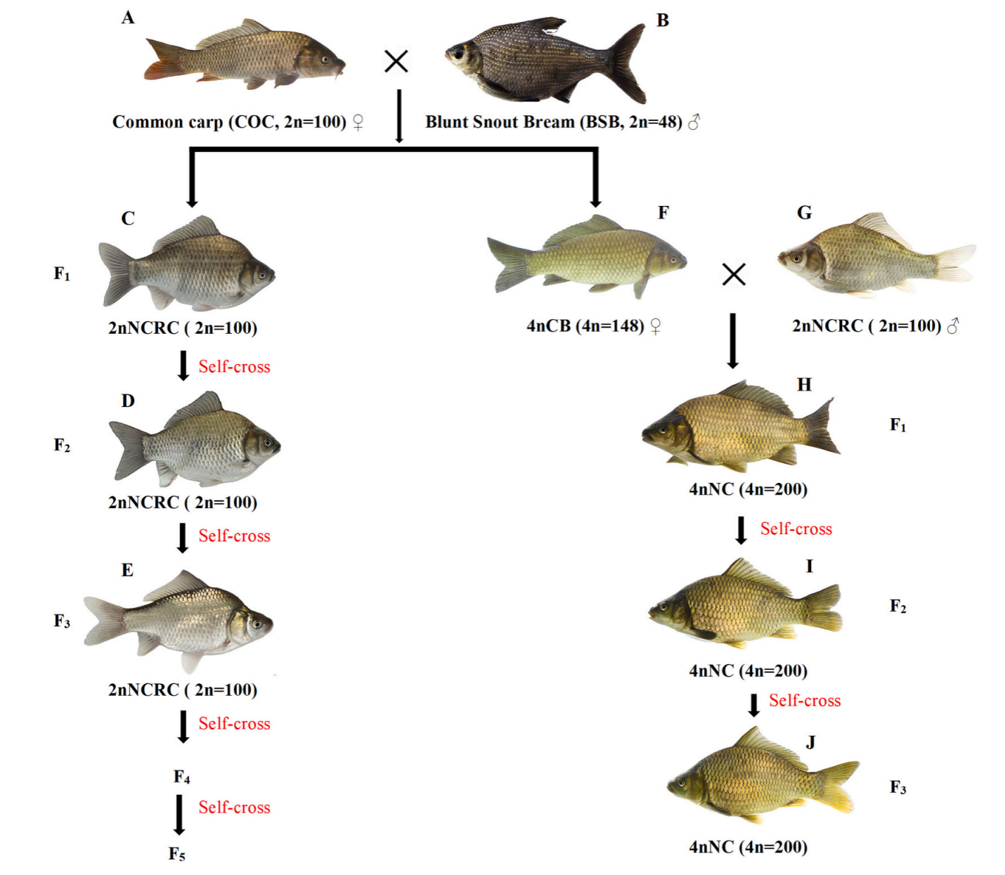 Unique nucleolar dominance patterns in different ploidy hybrid lineages derived from Cyprinus carpio (♀) × Megalobrama amblycephala (♂) |