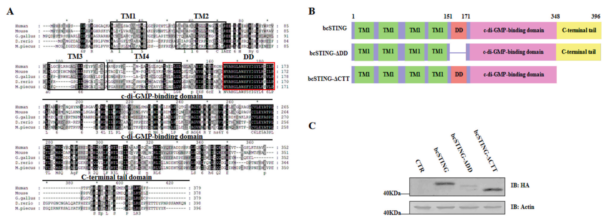 Role of the dimerization domain of black carp STING during the antiviral innate immunity |