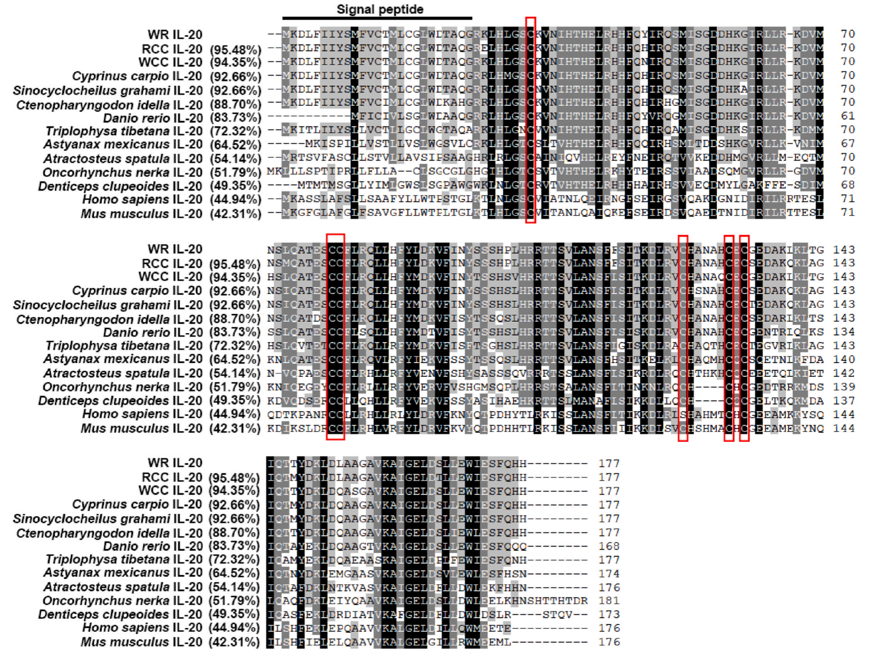 Evolutionarily conserved IL-20 enhances the response of JAK1/STAT3 axis in Carassius cuvieri × Carassius auratus red var |
